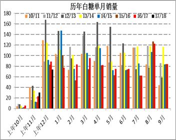 进口加税45%,外糖13-14美分,配额外进口利润260-270元/吨,配额内利润在2450元/吨左右,巴西糖长期贴水,泰国糖持续升水,政策限制效果持续显现,12月份中国进口糖13.3万吨,同比增长38.7%,环比下降15.8%。1月进口3万吨,同比下降37.97万吨,减幅92.7%。17/18榨季制糖年中国累计进口食糖48.88万吨,较16/17榨季同期的87万吨减少38.12万吨。