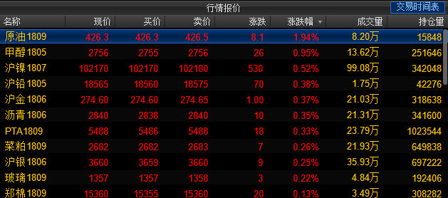 2、NYMEX原油期货收涨1.8%,报66.62美元/桶;布伦特原油期货收涨1.28%,报71.95美元/桶;两者均创2014年12月以来收盘新高。地缘政治局势紧张以及美元疲弱均支撑油价。