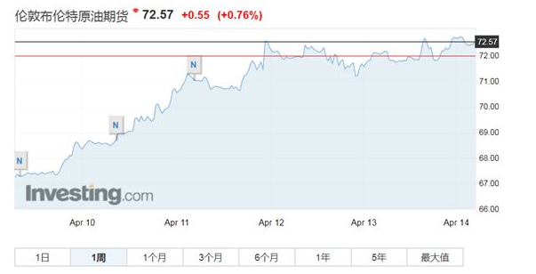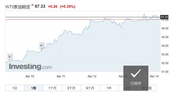 受叙利亚局势持续升温,布油在北京时间4月13日创下2014 年来新高,WTI原油价格则维持在2014年12月3日以来的最高水平,录的自去年7月以来最大单周涨幅。
