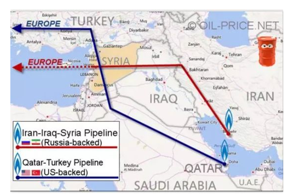从地图上看,这个答案非常清晰叙利亚所处的地理位置靠近许多世界原油运输管道和海上航线。目前中东每年向欧洲出口153.3万吨原油。这其中涉及到一条非常重要的原油运输管道'伊斯兰管道’。