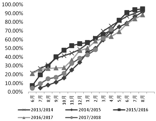 巴西方面,马托格罗索经济研究所的数据显示,4月,该州大豆销售进度为71.5%,高于去年同期的63.3%,但略低于5年均值71.98%。受中美贸易摩擦影响,巴西大豆升水一度抬高至270美分/蒲式耳,后期虽有回调,但也处于历史高位。此外,伴随着雷亚尔兑美元的走低,农户销售进度加快,3月,巴西大豆出口880万吨,已经属于历史高位,而4月,出口量有望达到1099万吨,创出历史纪录。目前,巴西大豆升水报价和汇率波动仍是影响农户销售节奏的重要因素。