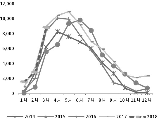 根据美国农业部上周四公布的报告,截至4月26日,2017/2018年度美豆出口销售净增41.63万吨,符合市场预期。美豆周度出口量一度保持在百万级别,而历史同期在40万吨的水平。压榨方面,美国全国油籽加工商协会发布的月报显示,3月,美国大豆压榨量为1.71858亿蒲式耳,远高于市场预期的1.68247 亿蒲式耳。此外,3月压榨量创历史新高,较去年同期增长12.3%。美豆市场需求良好。