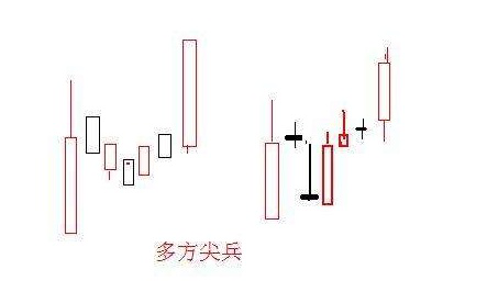 该形态多出现在期价横盘整理后或连续上涨一段时间之后,它是一个看多信号。大家可以选择在多方尖兵最后一个阳线建仓,若要更稳健一些,可在确认形态后的再建仓。