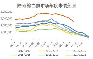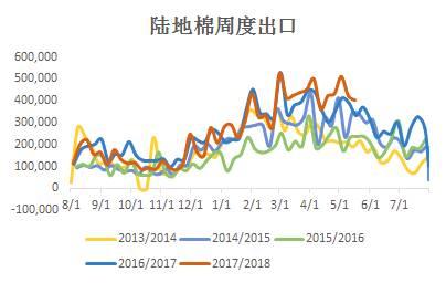 截至5月20日当周,17/18年度累计装运量261万吨,离出口目标337.5万吨还差76.5万吨,17/18年度还剩11周,85.5万吨每周装运7万吨左右即可完成USDA5月出口目标,若后期每周装运量维持在9万吨上下,则USDA有望继续调高美棉出口预期。
