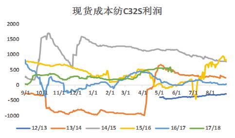 国储棉轮出,有利于下游纺企降低生产成本,当前国内纺企普梳C32S理论生产利润好于前两年,目前位于449元/吨一线,较轮出前明显增加。