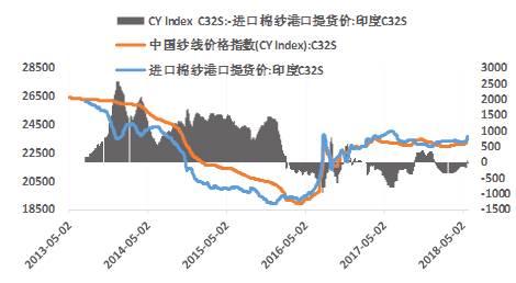 国际方面,美棉出口销售报告数据向好,17/18年度棉花未来存在继续上调出口目标的可能。18/19年度全球供需预期趋紧,近期国际市场跟随中国市场提前进入下年度预期行情,市场对种植季天气反映较往年更为强烈,目前美国得州地区干旱情况依然较严重;各机构对印度18/19年棉花播种面积纷纷呈悲观态度,印度预计4-6月季风正常,对于印度中部和南部来说,将近70%的棉花面积完全依靠降水提供水源,6月即将进入棉花的适播期,关注后期实际种植面积。