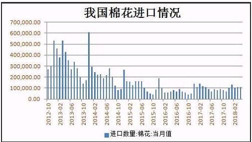 从供需形势看,国内棉花库存在2014年达到峰值,随后逐渐回落,国家由收储、抛储交替进行转为单纯抛储是库存减少的主要因素。据有关机构统计,2017年抛储结束后,国储棉库存量465万吨。2018年国储棉抛储从2018年3月12日开始,截止时间暂定为8月底,每日挂牌销售数量暂按3万吨安排,这样今年抛储结束后国储库存或许只有200万吨左右。恐怕对2019年市场的调控力不从心。而且,近期新疆天气因素影响新棉生长,如果今年的新棉产量明显减少,则国内棉花的供需矛盾将更为突出。