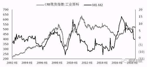 国内方面,从历史走势来看,M1-M2的剪刀差增速与大宗商品的涨跌高度吻合,剪刀差为正时,大宗商品是牛市,反之则普遍处于熊市阶段。背后的原因在于其走势与房地产销售高度相关,而我国房地产周期又是“周期之母”。地产销售火爆时,居民购房首付款快速上升,其储蓄存款不断向房地产企业的活期资金转移,表现为M1增速较M2增速更快。房地产调控背景下,居民地产杠杆加无可加,表现为开发商资金面收紧,投资施工的链条周期被拉长。因此,目前M1-M2剪刀差增速由正转负阶段,大宗商品上行动能较弱,不具备大牛市的基础。
