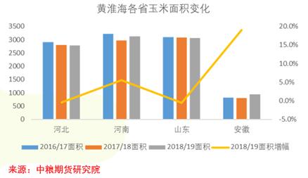河南是黄淮区域玉米面积调整的关键。去年花生收获期受灾,且价格从4.3下跌至2.3,调研发现花生改种玉米情况较多,驻马店、周口玉米面积增幅最大。但对于传统花生主栽区来讲,大多农户仍是选择小麦-花生套作,玉米面积基本稳定。此外,部分区域也存在玉米改种大豆的情况。整体看,河南玉米面积增幅5.5%。