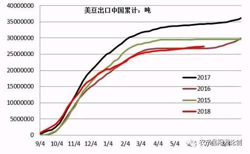 2017/18年度(10月开始)截止5月底,我们已经进口大豆6026万吨,根据6月usda预估的报告,中国在2017/18年度将进口9800万吨的大豆预估,本年度余下的6-9月还有四个月时间,中国还有3673万吨大豆未进口。按照预估,6月到港量预计870万吨,7月预计856万吨,8月预计800万吨,6-8月将有约2530万吨大豆进口到港,主要为巴西豆,那么9月开始还有约1000万吨,如果全部进口巴西豆基本也可以满足,这么看来本年度中国已基本完成进口,本年度(到9月份)不缺大豆,市场缺豆的事实未形成,那么豆粕上涨并不强烈,或者说基于贸易战影响的大幅上涨还没有到时间。
