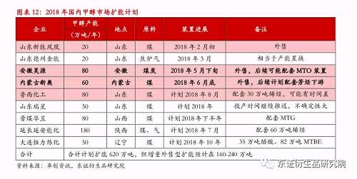 2018年上半年,新能凤凰、安徽昊源与内蒙古新奥的新装置陆续投产,合计新增扩能140万吨。下半年有投产计划的装置虽然不少,但这些装置或是投产确定性明显存疑或是同步配套下游,基本不会出现新装置投产冲击市场的情况。