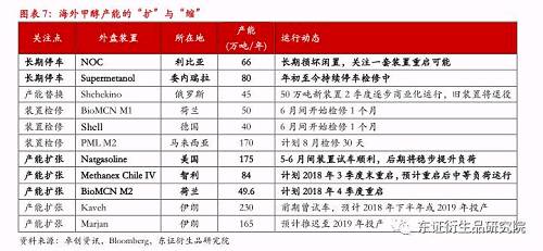 通过Methanex与OCI为代表的国际大型甲醇生产商的布局可以看出,除伊朗有意扩能外,2018-2019年海外商业化扩能主要在资源优势明显的美国,以及需求转暖、供应不足的欧洲地区,只是由于装置建设进程迟缓,新增扩能的潜在冲击很可能被需求端逐步消化。