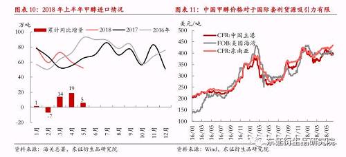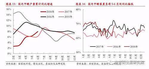 下半年,山东瑞星、晋煤华昱与恒力炼化如期投产的不确定性较大;鲁西化工(000830,股吧)可能因上下游投产时间错配阶段性外售甲醇,但其投产进程同样存在不确定性;延安能化装置投产的确定性虽然很高,但其相当于一体化装置,倒开车过程中甚至可能需要采购少量甲醇原料,基本不涉及外售。由此来看,下半年,国内甲醇市场基本不会受到新增扩能的影响。预估2018年全年国内新装置带来的增量外售货源仅在90-120万吨左右。