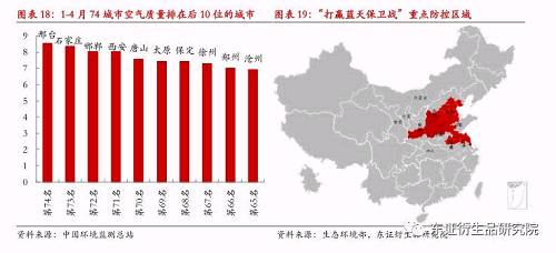 2018年6月,政策层面出台《打赢蓝天保卫战三年行动计划》,提出了2020年空气质量改善目标任务,环保工作重点更加明晰:一、重点防控污染因子是PM2.5;二、重点区域是京津冀及周边、长三角和汾渭平原等区域;三、重点时段是秋冬季;四、重点行业和领域是钢铁、火电、建材等行业以及“散乱污”企业、散煤、柴油货车、扬尘治理等领域;《打赢蓝天保卫战三年行动计划》与《大气十条》一脉相承,但重点防控区域调整为京津冀大气传输通道“2+26”城市、汾渭平原(包括山西省吕梁、晋中、临汾、运城市,河南省洛阳、三门峡市,陕西省西安、咸阳、宝鸡、铜川、渭南市以及杨凌示范区),以及长三角西北部(苏北、皖北一带),同时强调了优化运输结构,按照“车、油、路”三大要素三个领域齐发力来解决机动车污染问题,明确提出了加快公路转铁路、铁路转水运的要求。