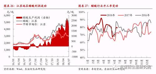 2018年上半年醋酸行业延续了高景气周期,不仅醋酸价格进一步上冲至高位,企业生产利润也创了新高。虽然醋酸市场的价格高涨有装置检修的阶段性因素,但其背后实际上扩能空窗期叠加内外需良好导致的景气现象。由于海外醋酸市场存在缺口,我国醋酸出口成为重要的拉动力量。由于装置例行检修等因素,醋酸行业开工率进一步大幅提升的可能性不大,但在高利润驱动下整体开工负荷大概率不会低于2017年,由此预计醋酸行业对甲醇原料的需求维持稳中略有小增的态势。