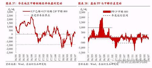 外采甲醇制烯烃行业的兴起已有数年时间,盈利状况不佳的状况时有发生,但我们对于长时间的盈利状况不佳应保持密切关注。一、今年以来,MTO盈利不佳制约了需求增量,由于甲醇原料价格居高不下,常州富德、吉林康乃尔等装置复产或新增投产无限期延后,年内恐将难以看到显著的增量需求;二、目前运行的有效产能因盈利性长期停车的可能性不大,由于企业配套下游产品增加了附加值,从而增强企业的抗风险能力。近期MTO的盈利性虽然差强人意,但对标过去几年间出现停车的情形(比如2017年底及2018年5月),企业对于甲醇原料价格仍有可承受空间;三、今年上半年期货市场对于MTO盈利修复持有预期,因此PP与甲醇的盘面价差波动区间较窄,下半年仍有可能出现期货价格涨幅弱于现货涨幅的情况,不过如果4季度供给侧扰动因素形成共振,甲醇市场的供应缺口即便部分MTO装置短期停车也难以补充,那么对于MTO盈利修复的预期也将被打破。