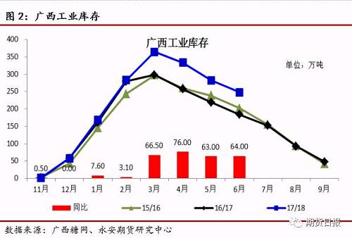 截止6月底,广西累计销糖354.7万吨,同比增加9万吨,产销率58.87%,同比下降6.42%,其中6月单月销糖34.7万吨,同比减少1万吨。截止6月底工业库存247.8万吨,同比增加64万吨。从销糖数据看,6月份单月销售不理想,工业库存压力大。