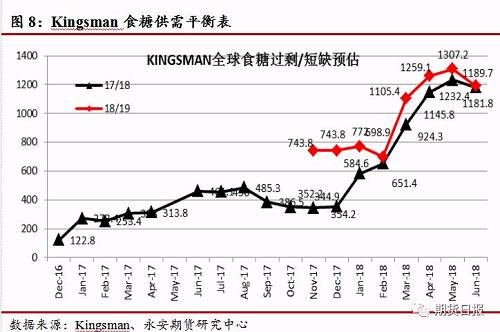 在经历两年供应短缺之后,17/18年度全球糖市步入过剩周期。从Kingsman平衡表来看,17/18、18/19年度,全球食糖供应严重过剩,过剩量分别达1182万吨和1190万吨。
