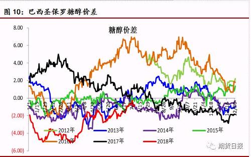 制糖比例方面,由于巴西国内汽油定价模式的转变,汽油价格跟随国际原油调整,汽油和有水乙醇的价格都处在相对高位。制乙醇经济优势更加明显。