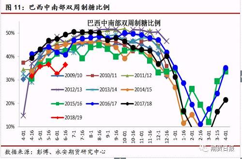 生产端对糖醇价差作出了迅速反映,近几期的双周报显示,巴西制糖比例同比大幅下滑,下滑幅度超出市场预期。截止6月15日,累计制糖比例为35.02%,同比下滑11.3%。随着糖醇价差的缩小,预计后期制糖比例会有所提高。