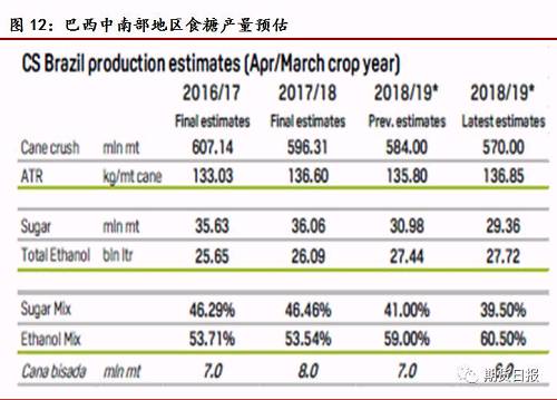 甘蔗产量下降和制糖比例下滑共同导致巴西食糖产量下滑。Kingsman最新的预估,甘蔗压榨量由5.84亿吨下调至5.7亿吨,制糖比例由41%下调至39.5%,食糖产量由3098万吨下调至2936万吨。