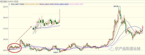 最后看一下储备棉拍储延期对棉价的影响。因2017年8月9日已经出现过延期拍储的公告,从期货价位上看,延期拍储公告发布后,期货市场价位并没有明显变动,处于窄幅震荡势态,而8月底公布的贸易商禁止参与拍储反而小幅拉高期价。