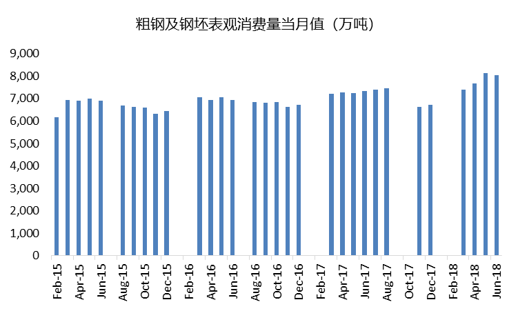 粗钢表观消费量与历史水平相比并不低,上半年全国粗钢表观消费量同比增长7.97%,其中6月份增幅已经超过8%。结合库存情况看,需求旺盛。