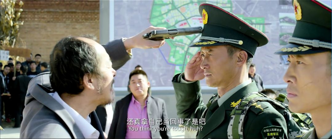 2017年7月《战狼2》开篇剧情,强拆队小鬼们开着大挖机开始对一栋民房实施强硬政策,嚣张跋扈,丝毫不顾忌用身躯挡在前面的百姓。