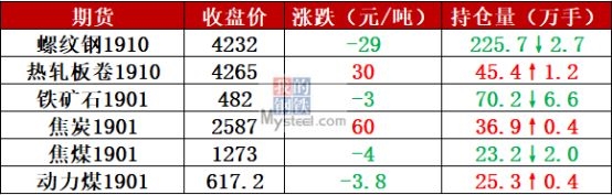 昨日黑色系商品涨跌互现,其中焦炭受环保消息影响,盘面一路上涨,逼近2600关口,持仓增加。其余品种涨跌互现,但持仓量均有减少。现货端,在昨日市场成交偏弱影响下,昨日市场价格小幅松动,但现货市场交投氛围有所好转。早盘期螺震荡翻红,也进一步带动了市场情绪,成交回暖。目前在低库存、高成本双支撑下,当前商家压力尚可,但当前需求端未有持续放量表现,波动较大,故预计的短期国内钢价呈震荡趋弱态势运行。