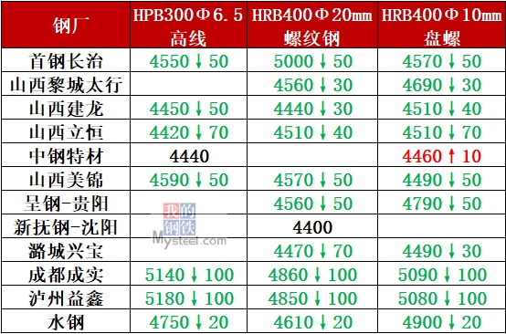 28日,国内10家建筑钢材生产企业下调出厂价20-100元/吨。