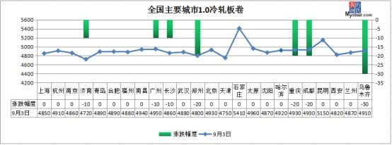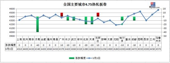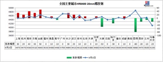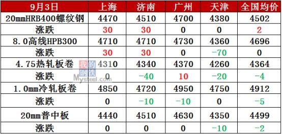9月3日,全国7家钢厂发布调价信息,调整幅度为-30-30元/吨。