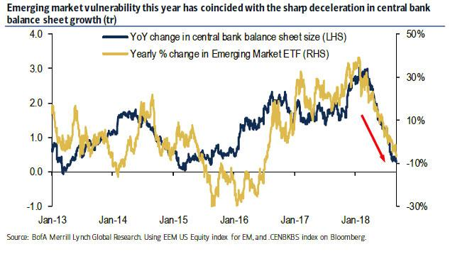 今年以来,新兴市场的脆弱性与央行资产负债表增长的急剧减速相互吻合,这就导致了新兴市场与G7集团的外汇交易量达到新高,新兴市场的交易员们更是一直拼命避免因美元走强而“受伤”。