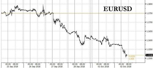 意大利下议院预算委员会主席、著名的疑欧派人士Claudio Borghi也表示,如果意大利有自己的货币,早就解决预算问题了;若意大利在欧元区以外,应能享受到更有利的经济条件;还称意大利完全可以将预算赤字设定在占GDP比重的3.1%,这将超过欧盟对成员国设定的红线。这一发言再度重燃市场对意大利脱欧(Italexit)的恐慌,欧元和意大利国债急跌。