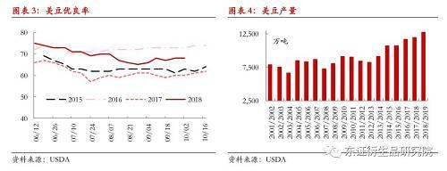 同样受到中美贸易摩擦的影响,中国采购了更多的阿根廷大豆,目前阿根廷大豆也是中国油厂最便宜的大豆来源,预计2018年4季度,中国和阿根廷两国的大豆贸易量会较往年同期明显增加,这也导致2017/18年度阿根廷大豆结转库存水平较上一年度下滑8%。