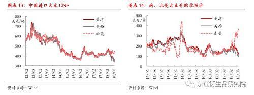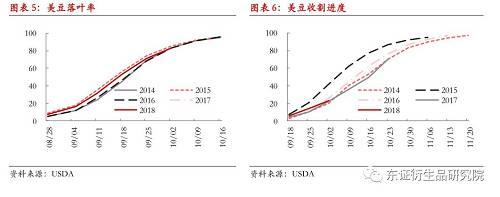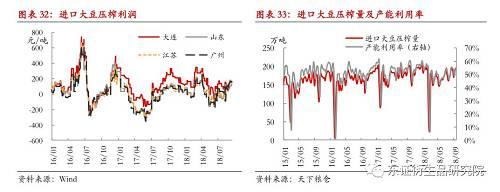 受到大豆、玉米种植效益差异很大影响,2018年全国大豆种植面积下滑10%左右,这与此前政府预估的8%的大豆种植面积增幅出入较大。另外,今年大豆种植期恰逢东北地区春旱,8-9月东北大豆生长关键期,东北地区大范围降温,黑龙江西部、北部以及东部局部地区,内蒙古呼兰贝尔大部遭遇早霜天气,恶劣的天气干扰大豆单产。