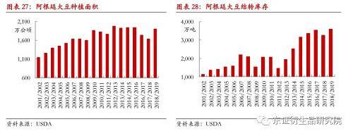 整体来看,2017/18年度由于阿根廷大幅减产,国内大豆供给趋紧,油厂为了履约豆粕和豆油的出口合同,被迫进口美豆实现压榨。同时,受到中美贸易摩擦影响,中国增加了阿根廷大豆采购量,阿根廷大豆结转库存显著下滑。新年度阿根廷农民种植大豆意愿增强,种植面积显增。