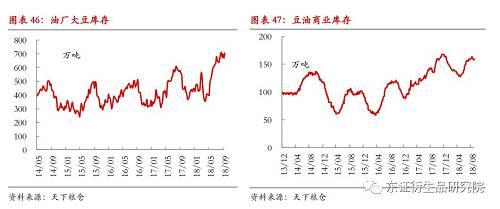 另外,由于豆油的替代品棕榈油库存持续攀升,令油脂价格整体走势承压。马来西亚棕榈油局(MPOB)公布数据显示,由于产量增加而出口下滑,2018年8月马来西亚棕榈油库存创下7个月以来的最高水平,达到249万吨,较7月增加12.4%,这也是2017年11月份以来的最高环比增幅。