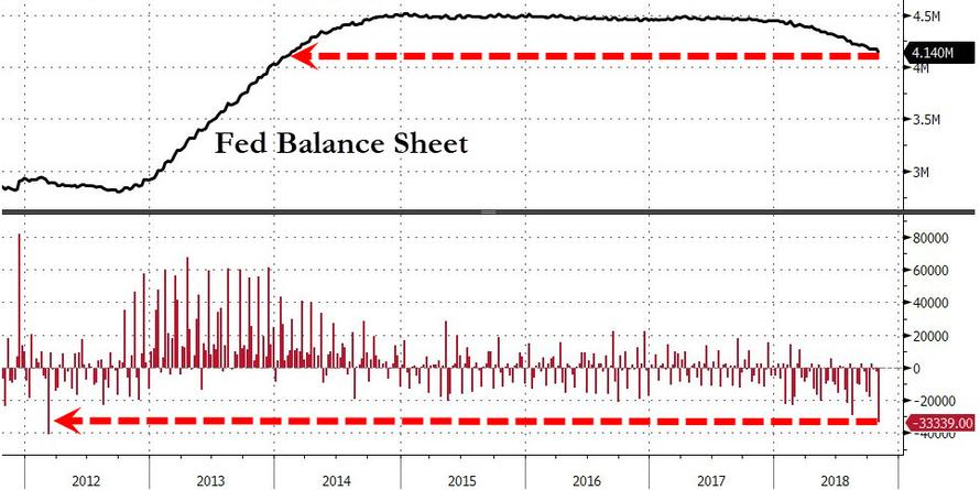 投资者和交易员们都忽略了“煤矿里的金丝雀“”(这个危险预警),而这种危险就来自于联储。联储的过度缩表对股市来说意味着黑天鹅。联储缩表的数量之大,是前所未来的。
