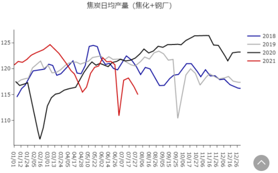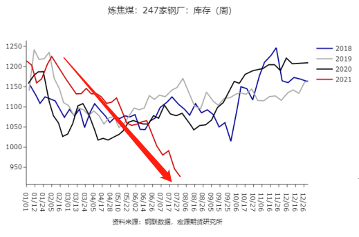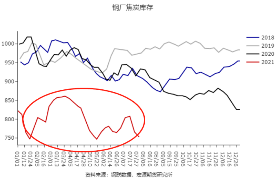 以上是焦炭钢厂库存、产量和焦煤钢厂库存,焦炭低得可怜的库存和缩水的产量真正诠释了什么是限产,而寻底的焦煤库存更是诠释了近期强势价格的背后逻辑。