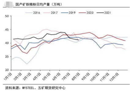 整个7月份由于百年大庆和环保的影响,部分产能关停,我们可以看到国产矿山产能利用率、国产铁矿精粉日均产量、国内月度粗钢日均产量都有明显的下滑。看来减产并不是口号。