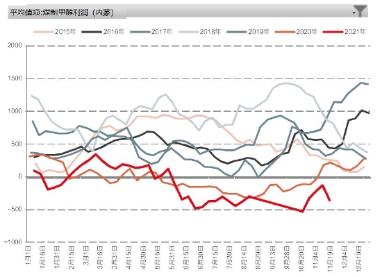 图:煤制甲醇(内蒙)利润(单位:元/吨)