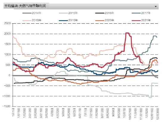 图:天然气制甲醇(西南)利润(单位:元/吨)