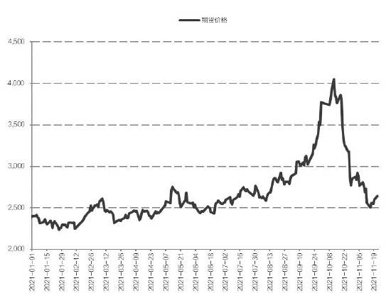 现货端1-10月同样价格全面上涨,10月中旬价格到达年内最高点,港口现货价格突破4000元/吨,内地受供应缩减影响价格一度接近4200元/吨。截止11月底,内蒙市场价格回落至2400元/吨左右,年涨幅约17%;太仓现货价格跌至2800元/吨左右,年涨幅约13%。