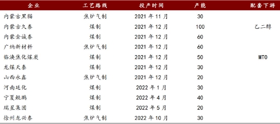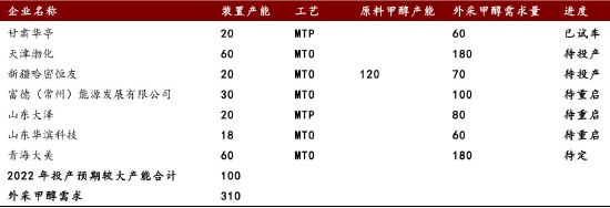 表:甲醇新增装置投产计划(单位:万吨/年)